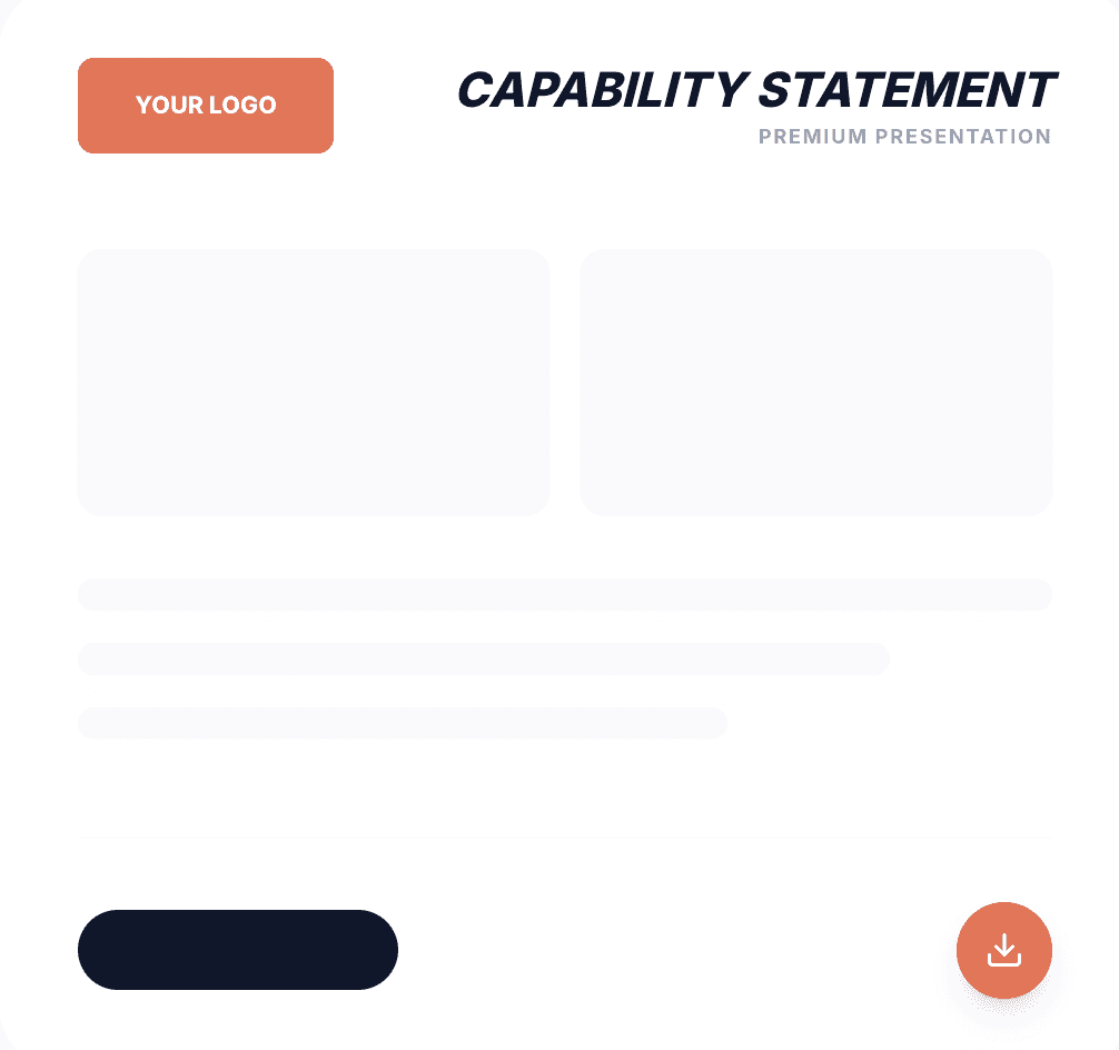 Stop sending boring spreadsheets. Generate professional, branded marketing-style capability statements and proposals in 5 minutes.